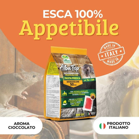 Bromadiolone 50 PPM, Denatonio benzoato, Calcio idrossido, Coformulanti e sostanze appetibili.